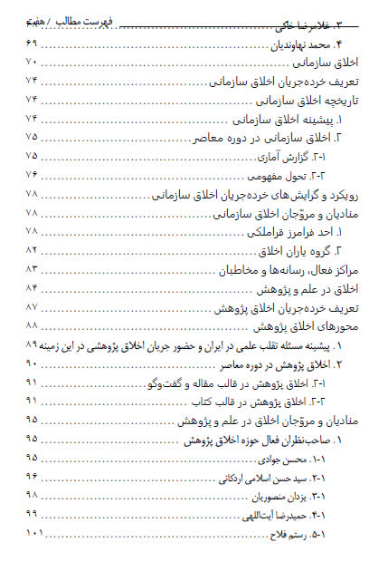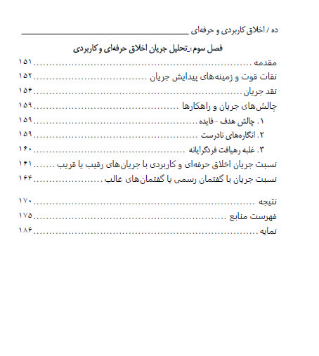 کتاب «اخلاق کاربردی و حرفهای» به بررسی جریان علمی و فکری اخلاق کاربردی و حرفهای در ایران معاصر میپردازد. این اثر با رویکردی توصیفی، تبیینی و تحلیلی، ابتدا به تعریف و شاخصهای کلان این جریان پرداخته و سپس شش خردهجریان اصلی آن را شامل اخلاق پزشکی، اخلاق کسب و کار، اخلاق سازمانی، اخلاق پژوهش، اخلاق فضای مجازی و اخلاق سیاسی معرفی و تحلیل میکند. نویسنده با استفاده از منابع کتابخانهای، پایگاههای اطلاعاتی معتبر و تجربههای آموزشی و پژوهشی خود، تاریخچه، پیشگامان، مراکز فعال و وضعیت هر خردهجریان را به تفکیک بررسی کرده است. در ادامه مبانی تصوری و نظری این حوزه تبیین شده و شاخصهایی مانند ماهیت میانرشتهای، پرهیز از حصرگرایی و جهتگیری حقوقی مورد تأکید قرار گرفته است. در نهایت، کتاب به تحلیل زمینههای شکلگیری، نسبت جریان با گفتمانهای رسمی و چالشهای پیشروی آن میپردازد.